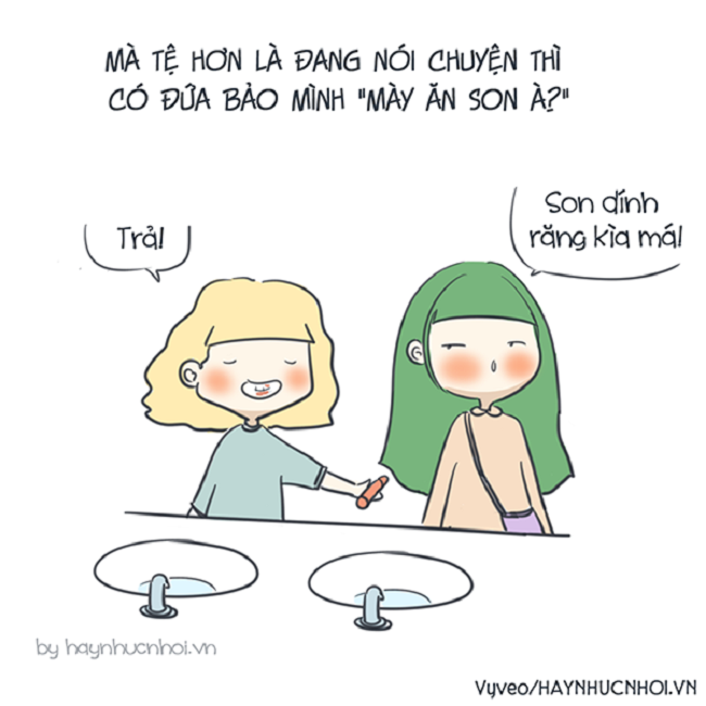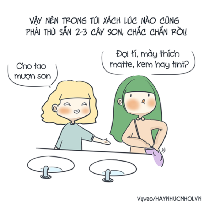 Nhiều lúc mang theo đến vài cây son môi đủ màu nhưng không dùng đến mà mục đích chỉ là cho con bạn thân dùng ké.