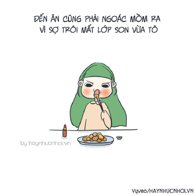 Nhiều lúc ăn uống mà sợ son bị lem, cứ phải méo mồm đủ kiểu để thức ăn không chạm vào môi